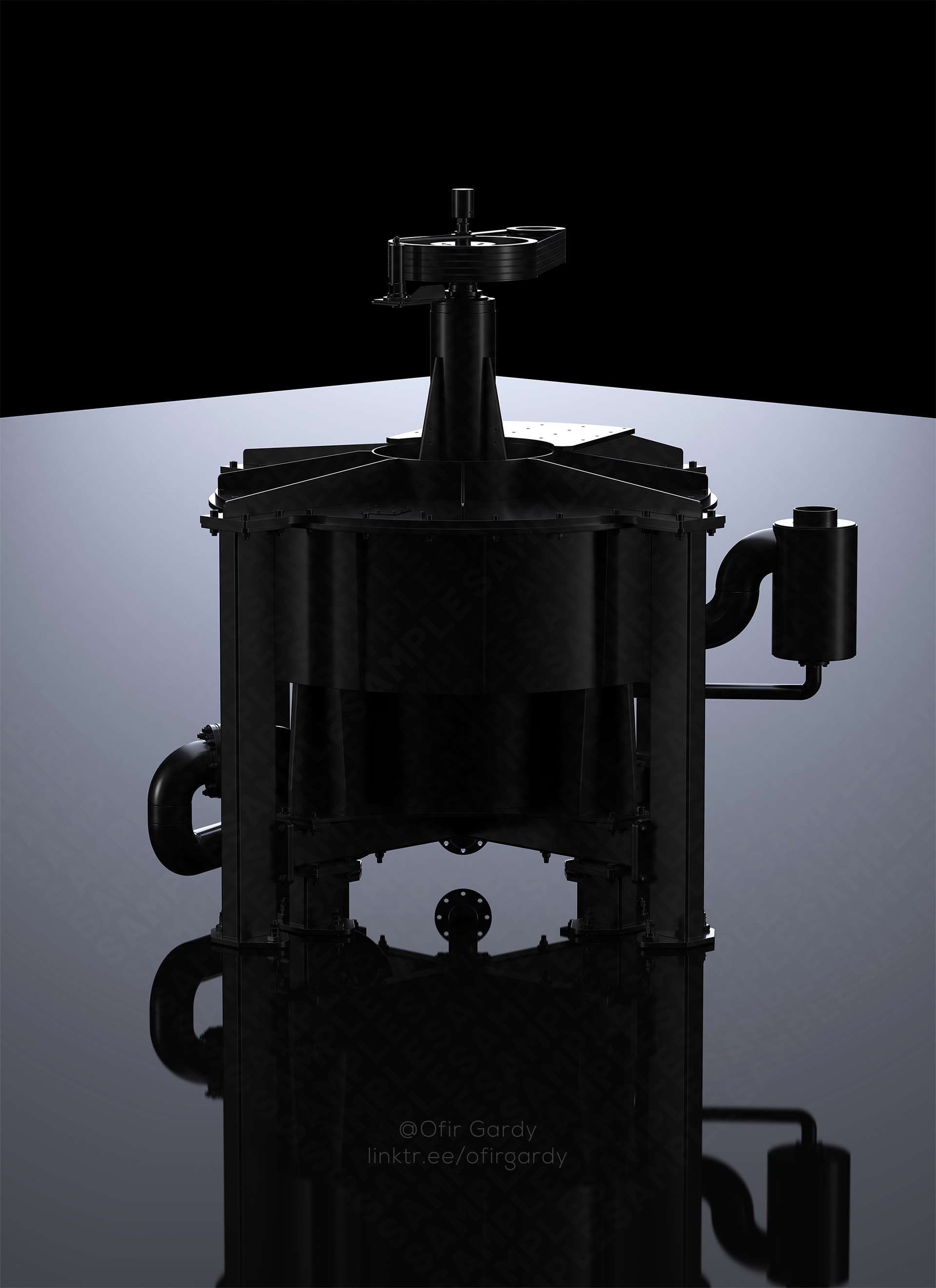 A collection of 4 creations depicting the LUMINESCENT Turbine as an OIL BLACK Monolith solid piece of machine.